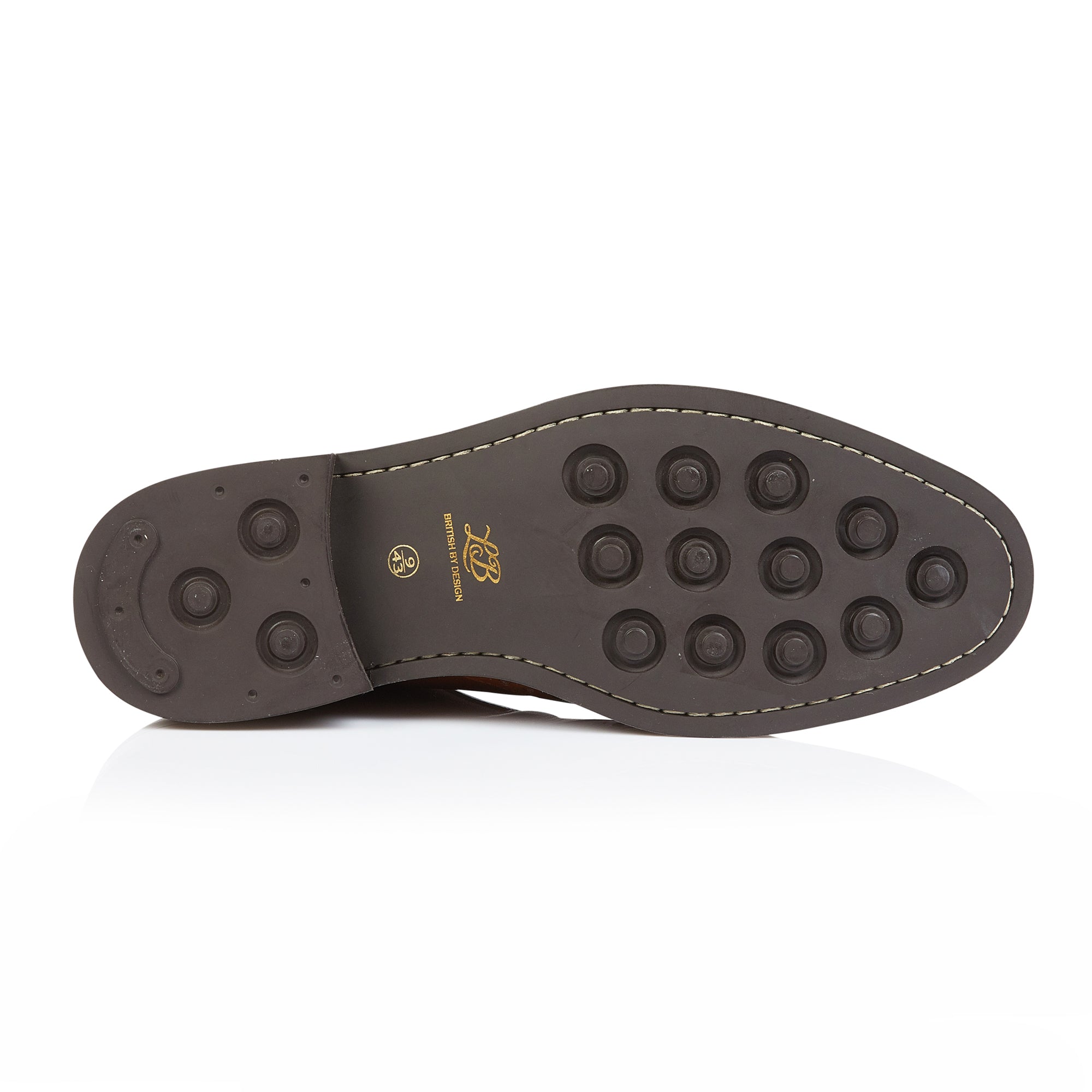 For smart and comfortable boot which is also practical, look no further then our Henry chelsea boot in tan. Our rubber sole boot is hard wearing and will stand up to multiple uses, from your daily commute to weekend walks. The brogue detail introduces a decorative pattern to the sleak, smart shape of these boots, adding personality and charm to your overall look. Warm tan leather lends the design a vintage feel that will pair well with chinos. Watertight and practical, but endlessly stylish and comfortable this mens brogue boot is the perfect companion for your next adventure